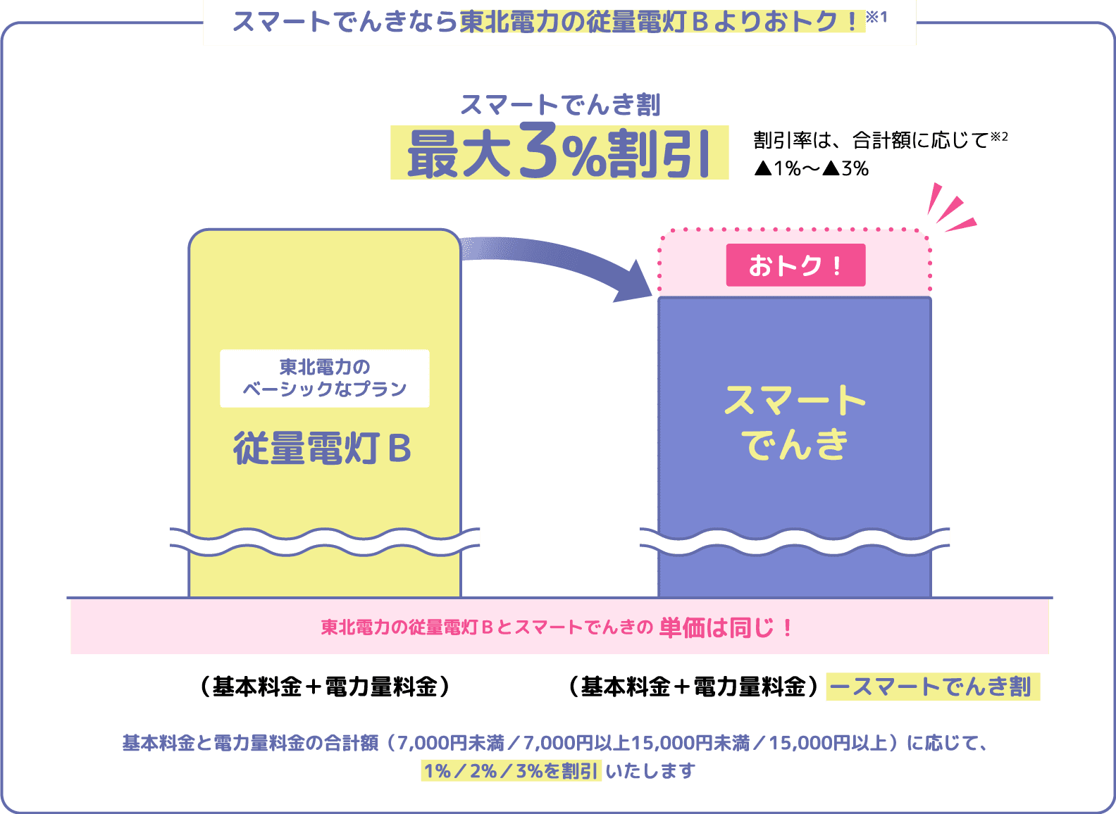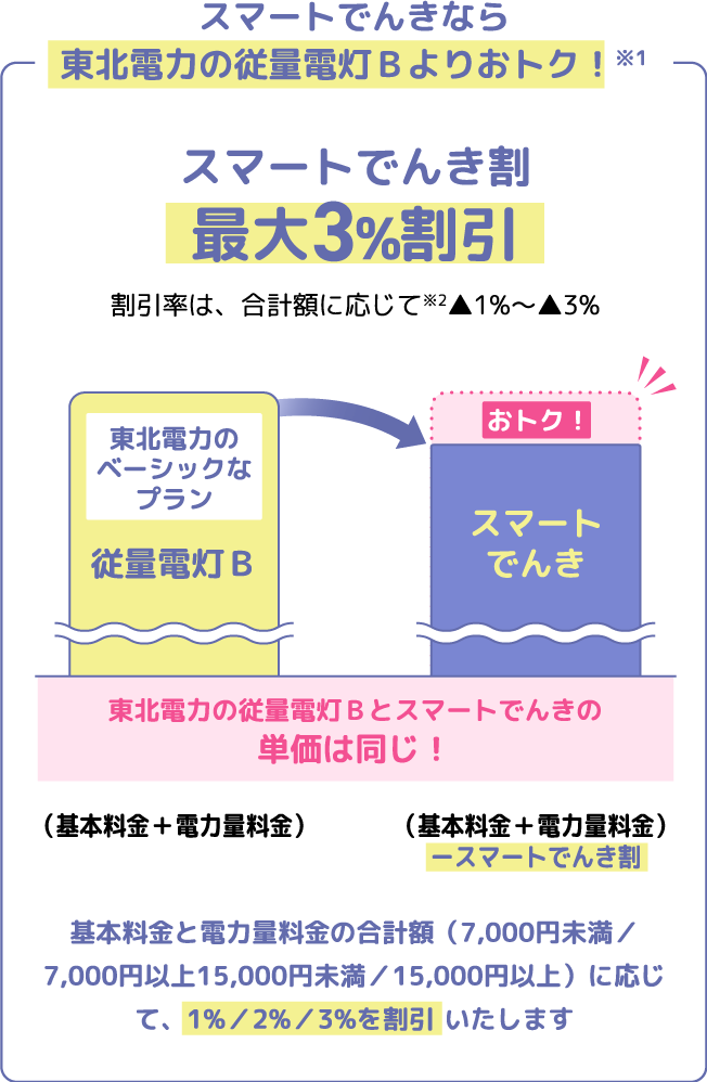 ※1以下の場合に、東北電力の従量電灯Bよりも料金が高くなる場合があります。
