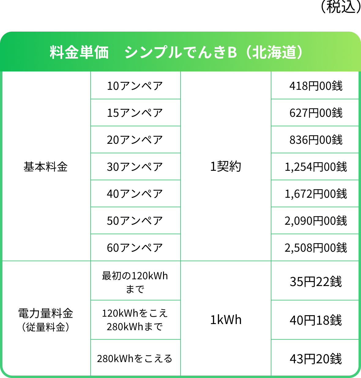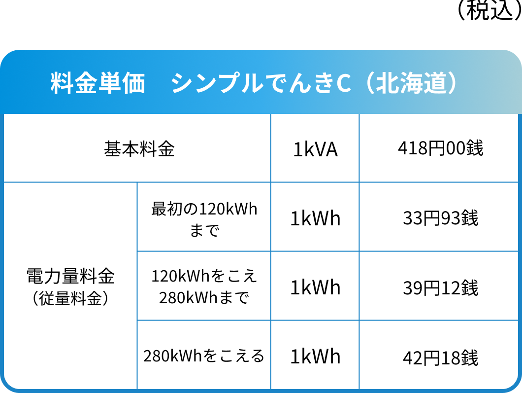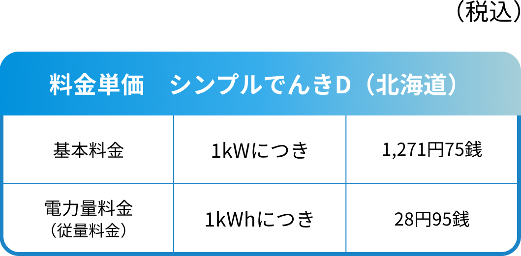 シンプルでんきD(北海道)をお申込みになる際は、シンプルでんきB(北海道)またはシンプルでんきC(北海道)のいずれかと合わせてお申込みください。